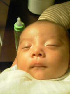 寝顔がかわいいから、まぁゲップを出さなくてもいいか。なんて事を考えてたらミルクを吐いてしまうから注意せねば。